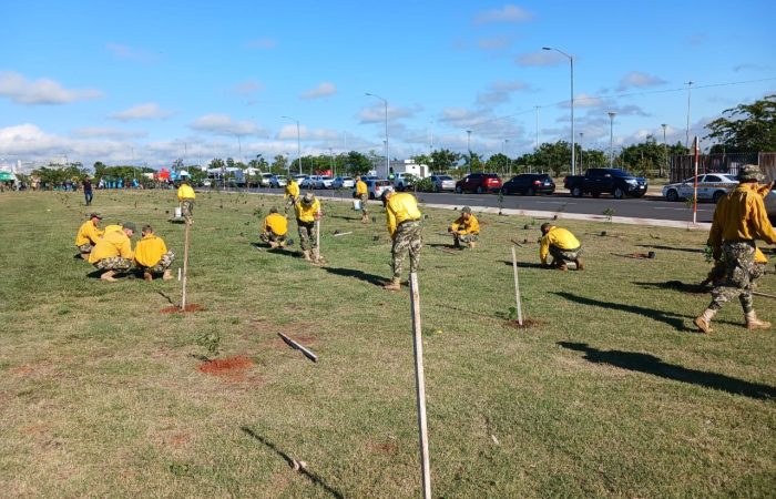 Personal de la Direcciรณn Ambiental del Ejรฉrcito (DIRAME) participaron de una jornada de plantaciรณn en la Costanera de Asunciรณn, en el marco del apoyo institucional a la Entidad Binacional Yacyretรก (EBY).