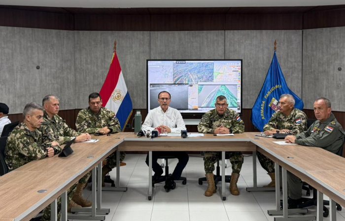 En la mañana de este sábado, desde el Destacamento Naval y Prefectura “Héroes del Chaco”, se llevó a cabo una conferencia de prensa presidida por el Señor Ministro de Defensa Nacional, referente al inédito trabajo conjunto desarrollado por el Ejército, la Armada, la Fuerza Aérea y el Comando Logístico, en apoyo a la Dirección Nacional de Ingresos Tributarios (DNIT), con el objetivo de combatir el contrabando y fortalecer la seguridad en el territorio nacional.